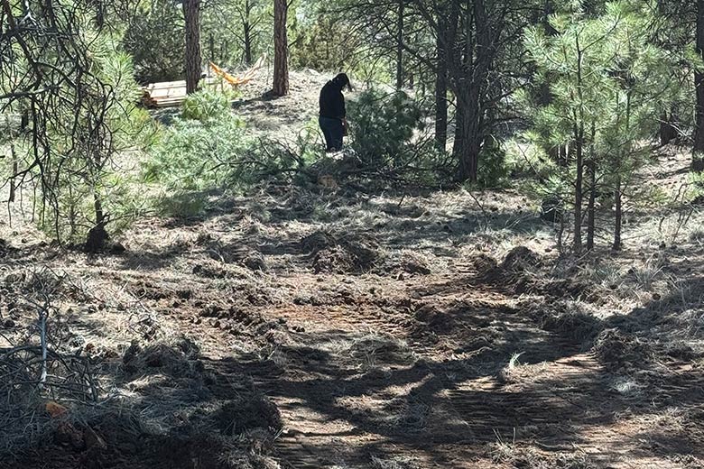 To create access to a designated parking area near a teepee setup in Helena, a few trees had to be cleared and removed. This made way for a rough-cut road to be carved out, providing a functional and direct route down to the site. The effort ensured easier access while working within the natural landscape.